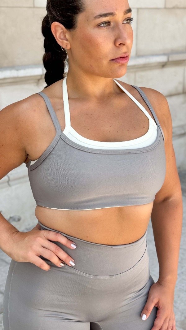El top alma se destaca por su alta sujeción, ya que en el bajo busto tiene elastico interno que hace que sujete super bien el busto.